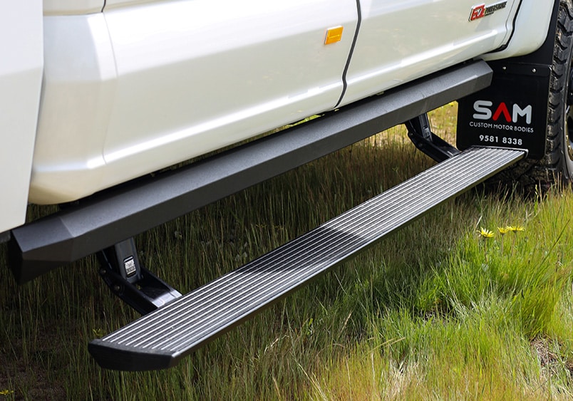 Sleek AMP Research powered Side Steps give you easy access when you need them.