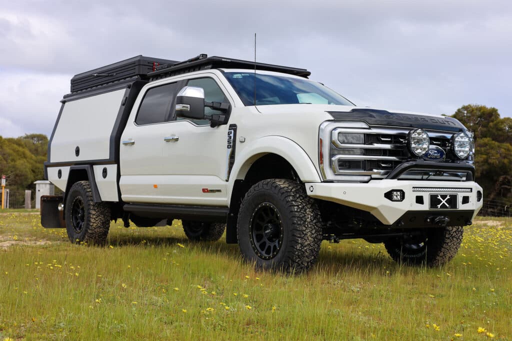 The end result is a big, no-nonsense F350 that is built for the farm but just as ready to take on long hauls across WA. With the extra clearance, serious lighting, and the right towing gear, this rig is ready to work as hard as its owner.